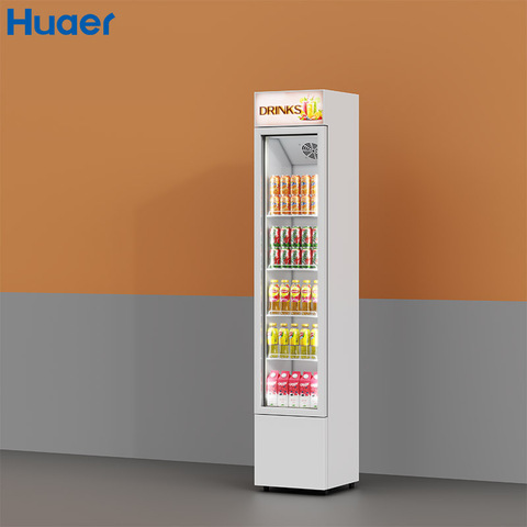 Réfrigérateur mince de réfrigérateur de porte en verre de refroidisseur d'affichage de boisson droite étroite grande